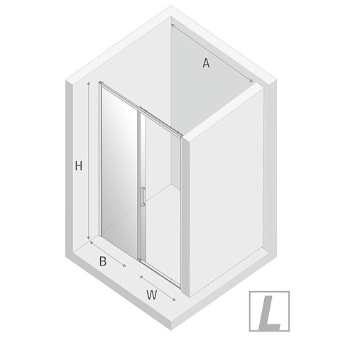 - безопасное закаленное стекло 6 мм; - защитное покрытие Active Shield. Технические размеры: Проем (A): 97,7-101,7 см; Ширина входа (W): 40 см; Неподвижная секция (B): 44 см; Высота (H): 200 см. Возможно изготовление изделия по индивидуальному за