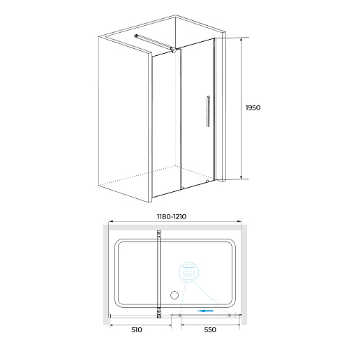 Душевая дверь RGW 41071812-14 Tornado TO-18B, профиль черный
