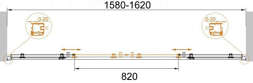 Дверь в проем. Тип дверей: одна раздвижная секция с одним неподвижным стеклом. Стекло: 6 мм, прозрачное или текстурное Punto. Исполнение: хром. Поддон: Тип АН или барьер Типа В. Поддон и барьер приобретаются отдельно. Особенности: * оригинальная Конструкция двойных роликов, * специальное Исполнение для высоких людей. Высота 1950 мм.