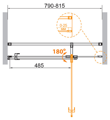 Дверь в проем. Тип дверей: одна распашная. Стекло: 8 мм. Исполнение: хром. Поддон: возможность комплектации поддонами типа А, AH ( поддон приобретается отдельно) Особенности: петли из нержавеющей стали, ход петли 270*, открывание в обе стороны, регулировка ширины предусмотрена за счет боковых профилей.
