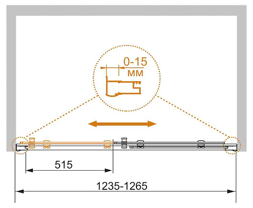 Дверь в проем. Тип дверей: одна раздвижная секция. Стекло: 5 мм, прозрачное или текстурное Punto. Исполнение: хром. Поддон: тип А, АН или барьер типа В. Поддон и барьер приобретаются отдельно. Особенности: * конструкция дверей обеспечивает максимальную ширину входа; * магнитный уплотнитель дверей; * увеличенная высота.