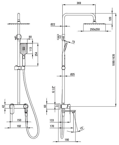 Оснащение Смеситель, излив, лейка, шланг, штанга для душа, верхний душ, аэратор.