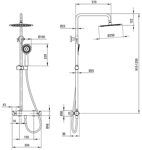 Оснащение Смеситель, лейка, шланг, штанга для душа, верхний душ.