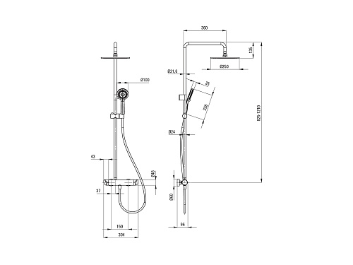 Длина душевого шланга, см 150