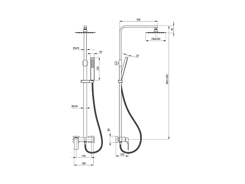 Регулируемая высота верхнего душа: да. Регулировка высоты штанги для [мм]: 1100. Регулировка высоты штанги для [мм]: 1200. Добавочные свойства: регулировка наклона душевой лейки. Форма верхнего душа: квадратный. Ширина верхнего душа [мм]: 250. Длина верхнего душа [мм]: 250. Anti-calc: да. Количество функций: 1. Виды струи: дождевой. Количество функций лейки: 1. Виды струи: дождевой. Вид оплетки шланга: не касается. Материал оплетки: PVC. Anti_twist: 1. Переключатель функции. Тип переключателя: механический керамический. Вид смесителя: смешивающий, однорычажный.