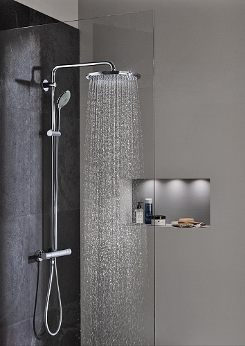 Rain / Massage / SmartRain GROHE DreamSpray превосходный поток воды GROHE SprayDimmer GROHE StarLight хромированная поверхность с системой SpeedClean против известковых отложений Внутренний охлаждающий канал для продолжительного срока службы универсальное крепление, подходящее к любому стандартному шлангу может использоваться с проточным водонагревателем
