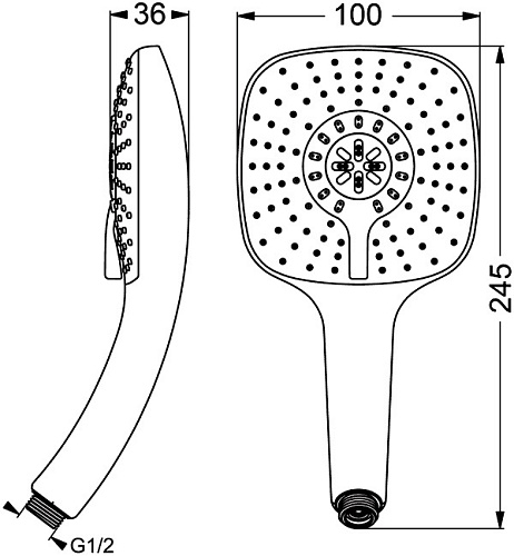 IDEALRAIN CUBE M3 Легкоочищаемая (резиновые форсунки) 3-функциональная душевая лейка (дождь, моросящий дождь, массаж), 100 мм, ограничение потока 8 л/мин., пластик