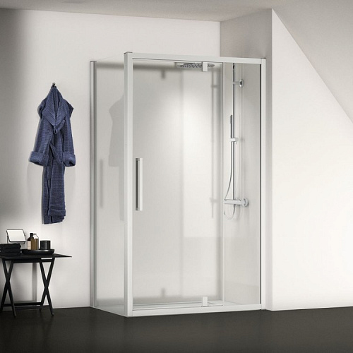 I.LIFE L Реверсивная фиксированная панель 80 см. Высота 200 см, безопасное прозрачное стекло 8 мм, антиизвестковое покрытие Ideal Clean, алюминиевый профиль Bright silver (толщина 1,2 мм), регулировка профиля до 20 мм, скрытые винты.