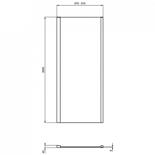I.LIFE L Реверсивная фиксированная панель 90 см. Высота 200 см, безопасное прозрачное стекло 8 мм, антиизвестковое покрытие Ideal Clean, алюминиевый профиль Bright silver (толщина 1,2 мм), регулировка профиля до 20 мм, скрытые винты.