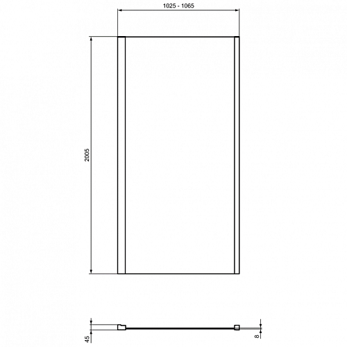 I.LIFE L Реверсивная фиксированная панель 105 см. Высота 200 см, безопасное прозрачное стекло 8 мм, антиизвестковое покрытие Ideal Clean, алюминиевый профиль Bright silver (толщина 1,2 мм), регулировка профиля до 20 мм, скрытые винты.