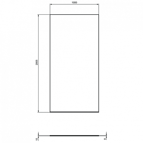 I.LIFE WetRoom Dual Реверсивная фиксированная панель 100 см. Высота 200 см, безопасное прозрачное стекло 8 мм, антиизвестковое покрытие Ideal Clean, алюминиевый профиль Bright silver, регулировка профиля до 25 мм. Для монтажа с прямым, угловым или потолочным кронштейном. Вход с двух сторон (без стеновых вертикальных профилей).