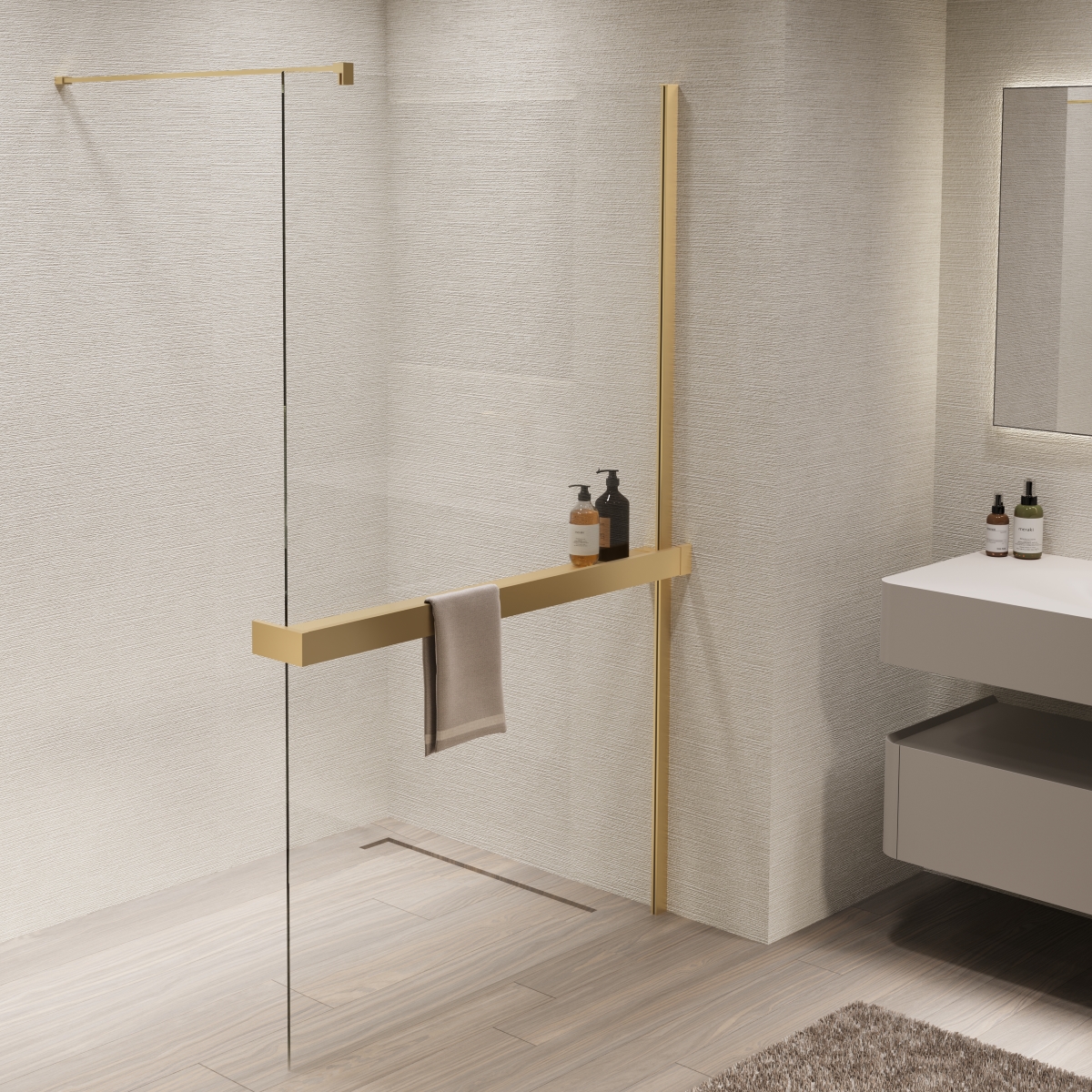 Душевая перегородка с полкой и полотенцедержателем Максимальная длина держателя кронштейна – 1200мм Длина полки с полотенцедержателем – 1400мм