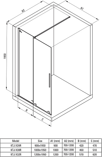 Душевое ограждение Deante KTJ_N32R Prizma раздвижное 120х195 см WALK-IN, Nero (черный)