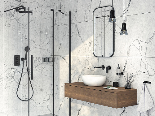 Душевое ограждение Deante KTJ_N39P Prizma 90х195 см, Total White/Nero (черный) купить по доступной цене
