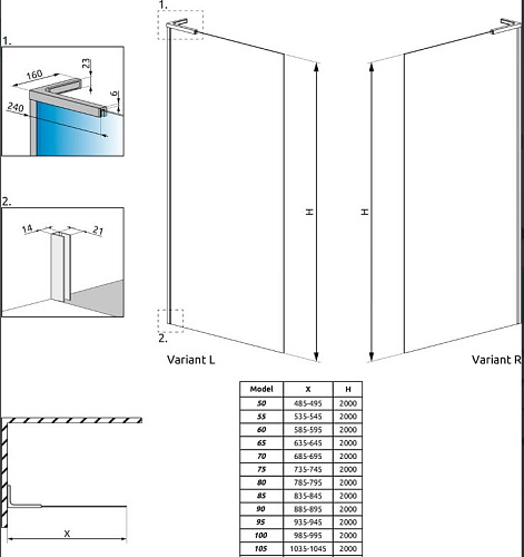Душевая перегородка Walk-In Radaway Modo SL 10319105-01-01L