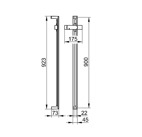 Оснащение Настенная штанга с передвижным держателем душевой лейки, компенсатор для плитки (5 мм).