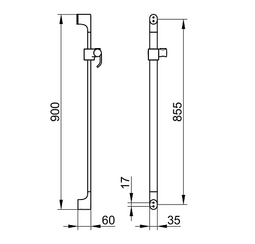 Оснащение Настенная штанга с передвижным держателем душевой лейки, компенсатор для плитки (5 мм).
