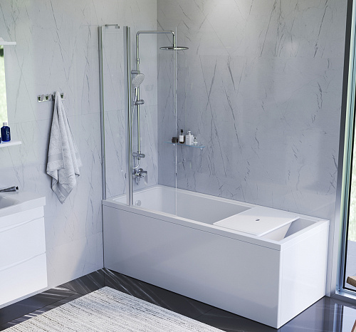 Шторка на борт ванны Gem выполнена в соответствующем всей коллекции дизайне: чистые грани, четкие формы и безупречный стиль. Поворотная конструкция с неподвижной стенкой может менять свое положение. Устанавливается на любые ванны бренда. Закаленное ударопрочное стекло толщиной 6 мм встроено в алюминиевый влагостойкий профиль, что гарантирует долгую службу продукта. На 100% защищает от разбрызгивания и предотвращает скопление воды за пределами ванны. Идеальное хромовое покрытие придает продукту стильный внешний вид, а также защищает от коррозии.