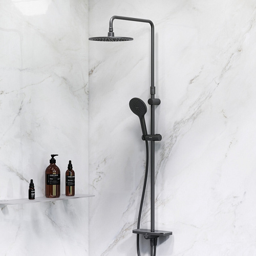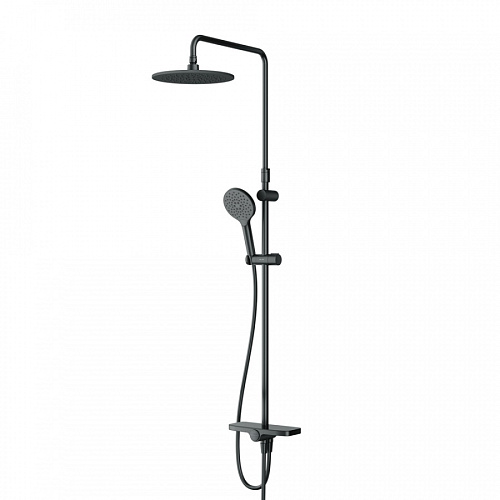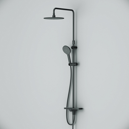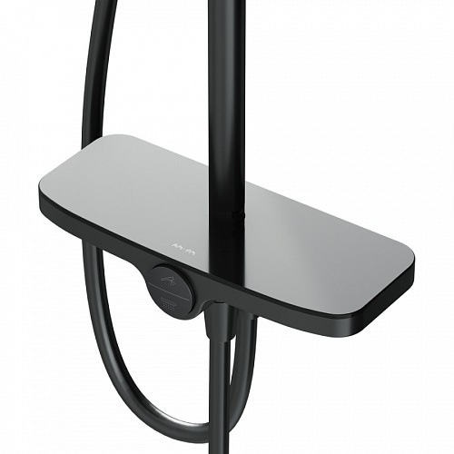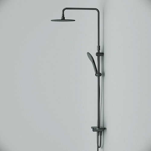 Тотальный дизайн в действии: все детали душевой системы – от пропорций ручного и верхнего душей до рисунка расположения форсунок на лейках. Премиальные размеры и продуманные детали: увеличенный диаметр душевых леек (верхний душ 220 мм и ручной душ 120 мм) позволит ощутить преимущества тропического душа, тогда как увеличенная длина шланга 1750 мм обеспечит свободу движений во время принятия душа. Телескопическая поворотная штанга регулируется по высоте в диапазоне от 1030 до 1460 мм, обеспечивая комфорт для людей любого роста, а шаровой шарнир в держателе верхнего душа позволяет регулировать угол его наклона. Нижнее крепление штанги выполнено в виде полочки, а переключатель верхний-ручной душ является ее продолжением. Нажав на него, вы можете менять источник потока воды от ручной лейки к верхнему душу.