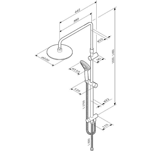 Тотальный дизайн в действии: все детали душевой системы – от пропорций ручного и верхнего душей до рисунка расположения форсунок на лейках – подчинены единой дизайн-концепции коллекции Gem. Интенсивный напор даже при низком давлении в системе: инновационная функция Air In увеличивает напор вдвое при этом сокращая расход воды на 30%. Результат – экономия средств забота об экологии а главное – непередаваемое удовольствие от принятия душа. Диаметр душевых леек (верхний душ 220 мм и ручной душ 110 мм) позволит ощутить преимущества тропического душа даже в стандартной ванной,  тогда как увеличенная длина шланга 1750 мм обеспечит свободу движений во время принятия душа. Продуманные детали для удобства использования: телескопическая поворотная штанга регулируется по высоте в диапазоне от 1030 до 1460 мм обеспечивая комфорт для людей любого роста.