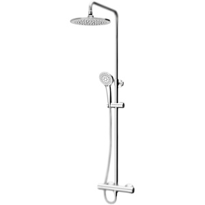 Душевая система AM PM Like F0780400 с круглым верхним душем, с термостатическим смесителем. Смеситель:, Покрытие: глянцевый хром., Материал: латунь., Управление: термостатическое., Стопор безопасной температуры: 38 градусов., Клапан обратного потока., Монтаж: на стену, в два отверстия., Расстояние между центрами креплений: 15±1,5 см., Стандарт подключения: G 1/2. Душевая колонна:, Покрытие: глянцевый хром., Телескопическая штанга с регулировкой высоты: 84-128 см., Расстояние между точками крепления: 76,4 см., Переключатель потоков., Верхний душ: круглый, D 25,4 см., Длина кронштейна верхнего душа: 38,5 см., Ручной душ: 3 режима, D 11 см., Регулируемый держатель ручного душа на штанге., Защита от известковых отложений., Душевой шланг: система антискручивания, L 175 см. В комплекте поставки:, штанга,, смеситель,, верхний душ с кронштейном,, ручной душ c держателем,, переключатель потоков,, душевой шланг,, комплект креплений.