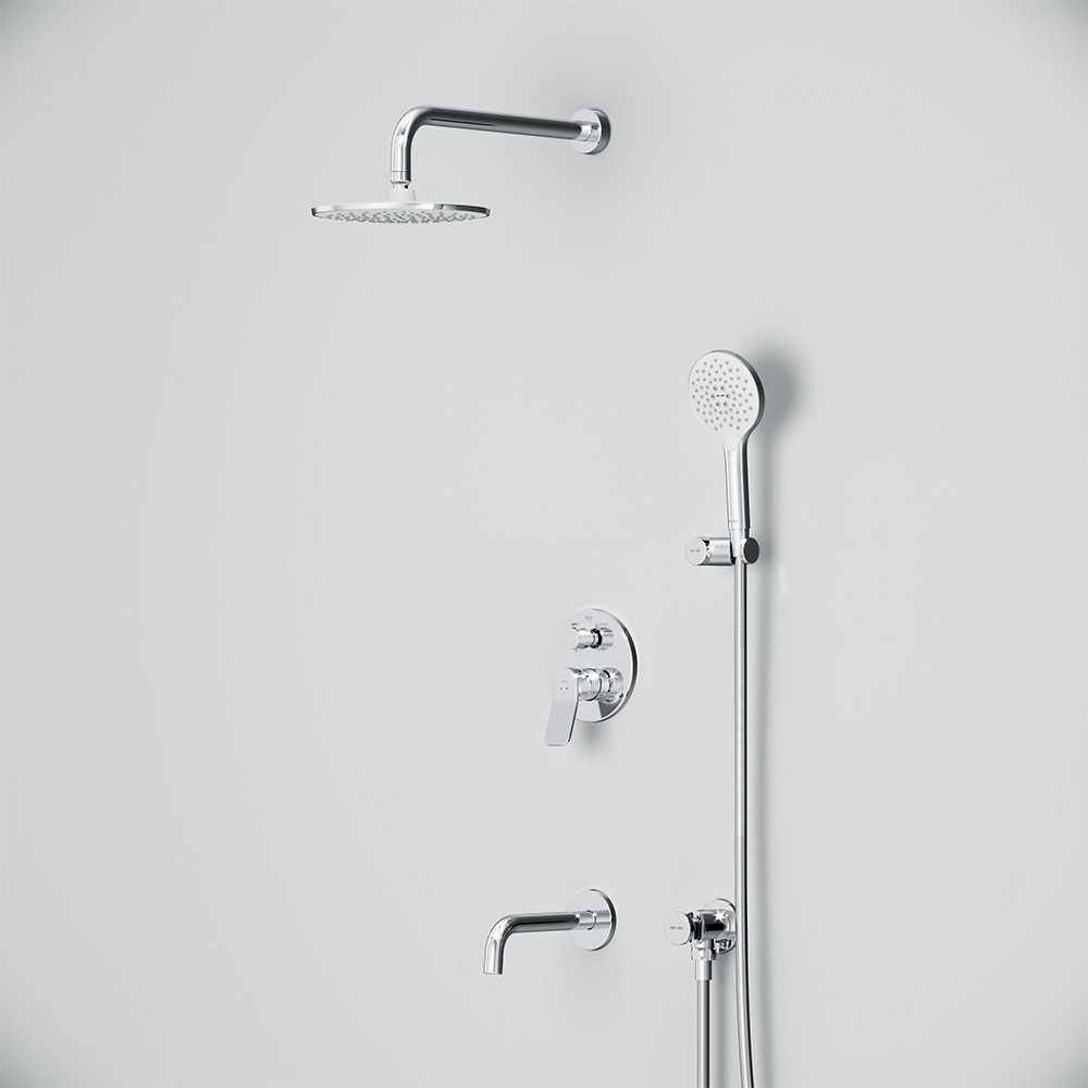 Коллекция X-Joy включает в себя по-настоящему дизайнерские продукты в своем ценовом сегменте. Разработанные дизайн-агентством GP designpartners из Австрии они завоевали любовь многих покупателей. Набор встроенного оборудования X-Joy - идеальное решение для вашей ванной комнаты. Встроенный механизм освобождает ванную комнату от лишних деталей превращая пространство в идеальное место для себя. Набор включает в себя: верхний тропический душ 22 см ручной душ держатель ручного душа излив и смеситель. Традиционный однозахватный смеситель создан специально для приверженцев классики. Смеситель имеет удобный переключатель сразу на 3 выхода что является эффективным инженерным решением в сантехнической отрасли. Покрытие Everlast – вдвое превышает отраслевые стандарты по прочности и износостойкости. Ювелирный блеск и прочность покрытия достигаются по стандарту Chrome plating standard NSS 80H. Отдельная гарантия на корпус и покрытие – 10 лет в два раза больше чем принято по европейским стандартам. ""