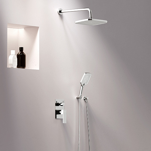 Душевая система Gala обладает мягкими геометричными формами которые идеально впишутся в современную ванную комнату. Простая и минималистичная на первый взгляд она чрезвычайно функциональна и удовлетворит даже самого искушенного пользователя. А полностью скрытые коммуникации освободят дополнительное пространство для реализации самых смелых дизайнерских идей. Настоящее SPA прямо у вас дома: увеличенный размер тропической лейки с регулируемым углом наклона и 3 режима ручного душа сделают ваши ежедневные ритуалы незабываемыми. Простота и минимализм во всем: переключайте потоки воды между ручной тропической лейкой и изливом плавным поворотом дивертора. Инновационное покрытие High Gloss гарантирует чрезвычайную прочность душевой системы надежно защищая хромовую поверхность от механических повреждений коррозии и потери цвета. ""