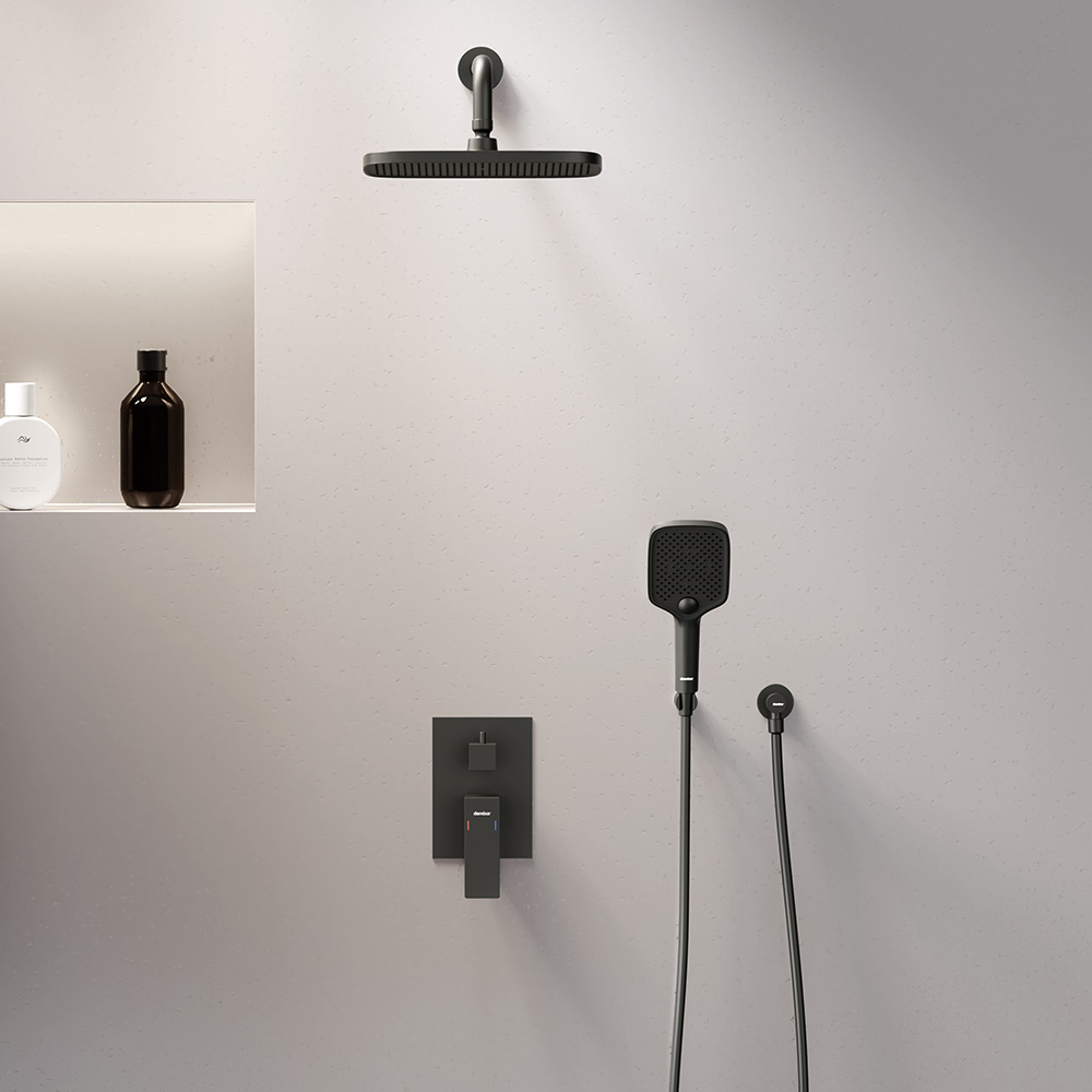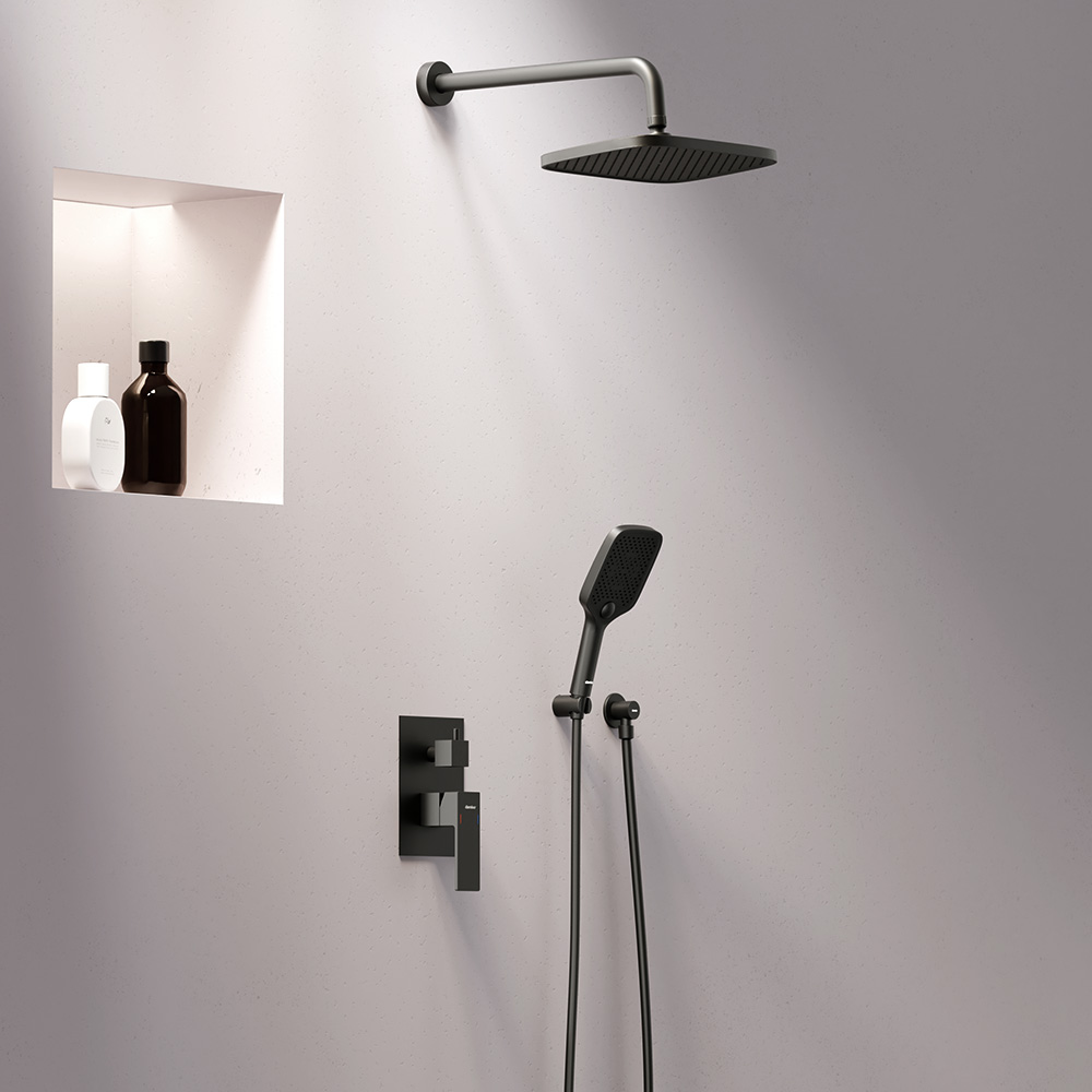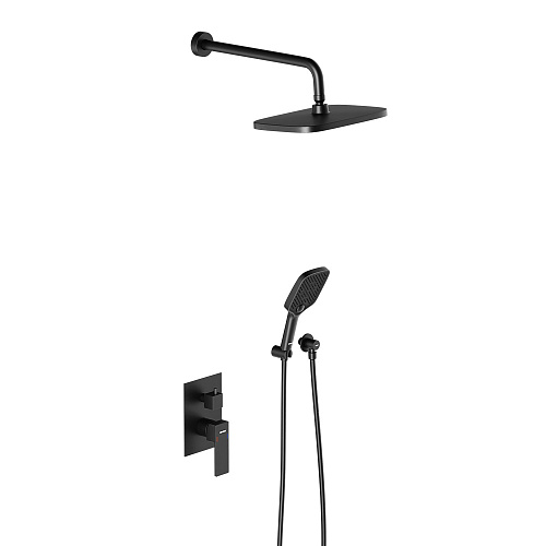 Душевая система Gala обладает мягкими геометричными формами которые идеально впишутся в современную ванную комнату. Простая и минималистичная на первый взгляд она чрезвычайно функциональна и удовлетворит даже самого искушенного пользователя. А полностью скрытые коммуникации освободят дополнительное пространство для реализации самых смелых дизайнерских идей. Настоящее SPA прямо у вас дома: увеличенный размер тропической лейки с регулируемым углом наклона и 3 режима ручного душа сделают ваши ежедневные ритуалы незабываемыми. Простота и минимализм во всем: переключайте потоки воды между ручной тропической лейкой и изливом плавным поворотом дивертора. Инновационное PVD-покрытие гарантирует чрезвычайную прочность душевой системы. Матово-черная поверхность не выцветает с годами и устойчива к механическим повреждениям загрязнениям и отпечаткам пальцев. ""
