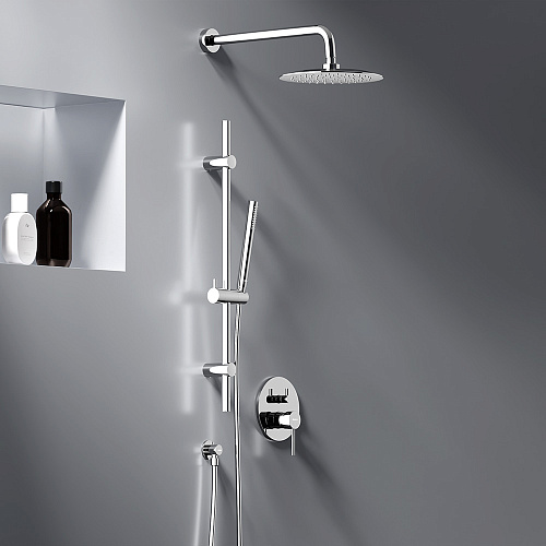 Встраиваемая душевая система Scandinavian Pure — воплощение минималистичного датского дизайна солидного скандинавского качества и многолетнего опыта Damixa. Элегантные обтекаемые формы и ювелирный блеск станут настоящим украшением современной ванной комнаты. Скрытые коммуникации освободят дополнительное пространство для реализации самых смелых дизайнерских идей. Четко выверенные пропорции и установка прямо в стену делают продукт максимально комфортным для использования в ванной комнате любого размера. Увеличенный диаметр верхнего душа с возможностью регулировки угла наклона и ручная лейка в трендовой форме стика подарят вам полный спектр ощущений — помогут взбодриться утром и расслабится вечером. Переключайте потоки воды между ручной и тропической лейками плавным поворотом дивертора. Инновационное покрытие High Gloss надежно защищает хромовую поверхность душевой системы от мелких повреждений и сохраняет ювелирный блеск на долгие годы. ""