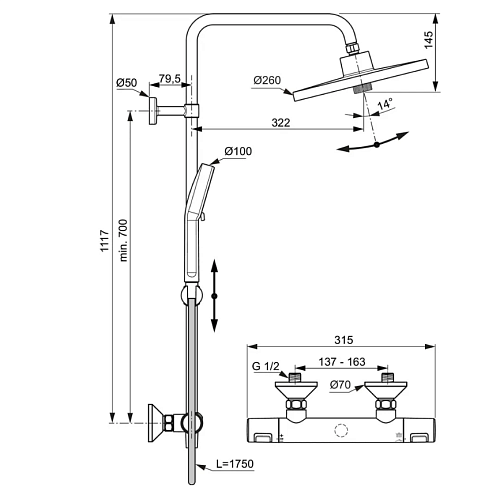 Душевая система Ideal Standard A7210AA Ceratherm T25+ , Chrome (хром)