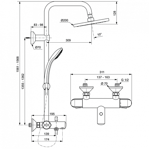 Душевая система Ideal Standard A6426AA Idealrain Eco с термостатическим смесителем для ванны/душа, Chrome (хром)