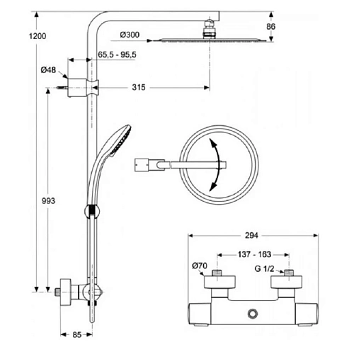 Душевая система Ideal Standard A6246AA Idealrain Luxe с термостатическим смесителем, Chrome (хром)