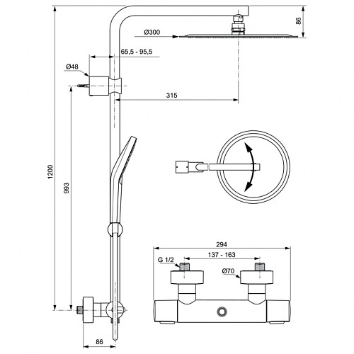 Душевая система Ideal Standard A6984AA Idealrain Luxe Evo Jet с термостатическим смесителем, Chrome (хром)
