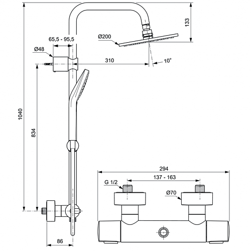 Душевая система Ideal Standard A6983AA Idealrain Soft Evo с термостатическим смесителем, Chrome (хром)