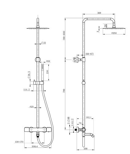 78PZ687THSSD250F1B Cox Душевая система с термоcтатом, поворотный излив, брашированный чёрный PVD