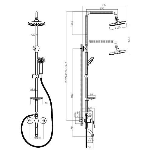 Размер верхнего душа: 19.5 см