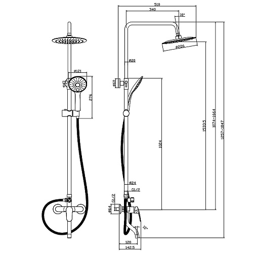 Душевая система Rossinka RS45-46 RS45 с изливом, хром