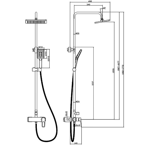 Оснащение Душевой шланг, душевая лейка, эксцентрики