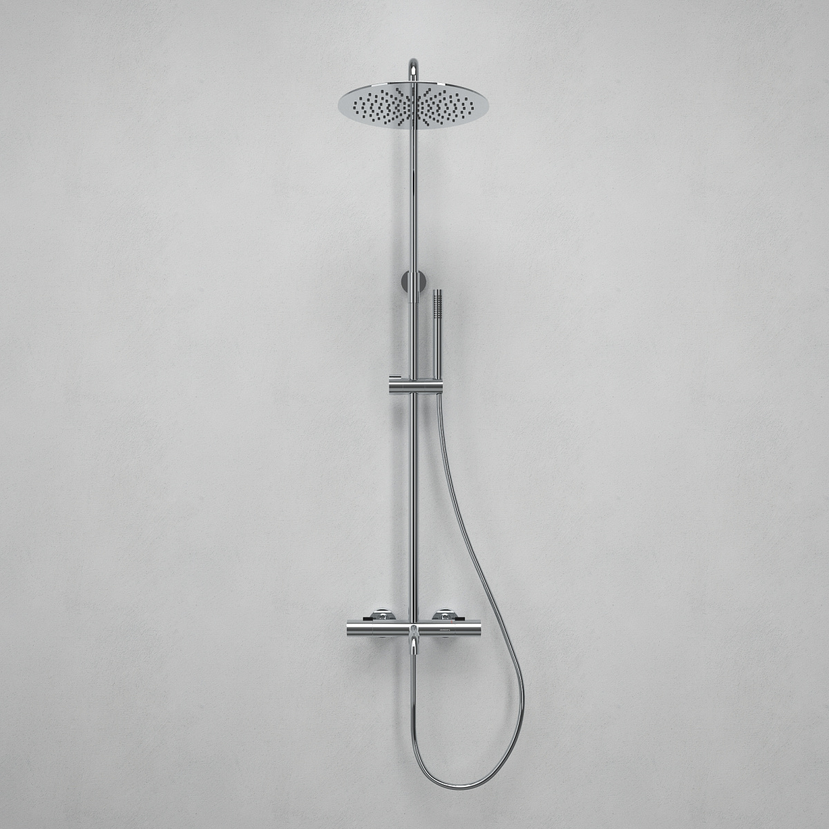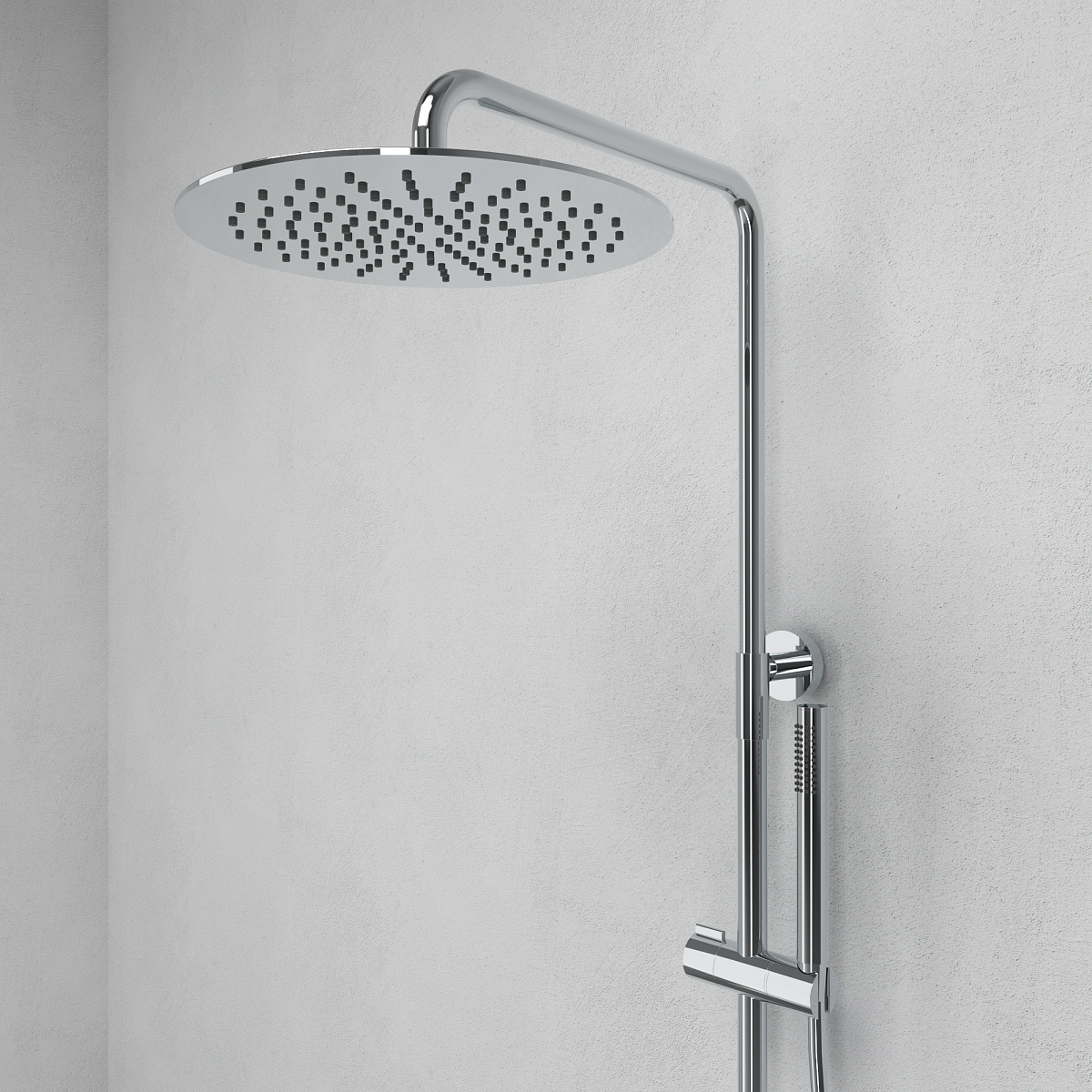 Душевая система Fluida с термостатом для ванны и душа — это объединение пластичной формы и высокой функциональности. Геометрия круга, плавные изгибы и лаконичный силуэт делают его естественным элементом современной ванной комнаты, создающим ощущение визуального порядка и спокойствия. Благодаря сбалансированным пропорциям и интуитивному управлению, Fluida становится не просто техническим элементом, а частью эстетичного ритуала — каждый день, в каждом движении.