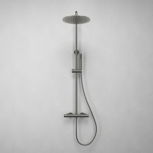 Душевая система Fluida с термостатом для душа — это объединение пластичной формы и высокой функциональности. Геометрия круга, плавные изгибы и лаконичный силуэт делают его естественным элементом современной ванной комнаты, создающим ощущение визуального порядка и спокойствия. Благодаря сбалансированным пропорциям и интуитивному управлению, Fluida становится не просто техническим элементом, а частью эстетичного ритуала — каждый день, в каждом движении.