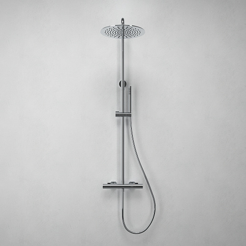 Душевая система Fluida с термостатом для душа — это объединение пластичной формы и высокой функциональности. Геометрия круга, плавные изгибы и лаконичный силуэт делают его естественным элементом современной ванной комнаты, создающим ощущение визуального порядка и спокойствия. Благодаря сбалансированным пропорциям и интуитивному управлению, Fluida становится не просто техническим элементом, а частью эстетичного ритуала — каждый день, в каждом движении.