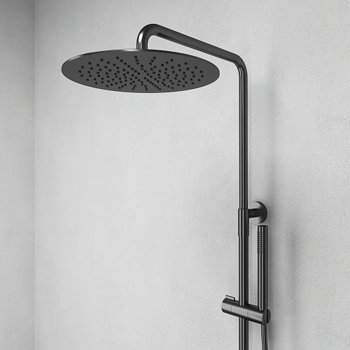 Душевая система Fluida с термостатом для душа — это объединение пластичной формы и высокой функциональности. Геометрия круга, плавные изгибы и лаконичный силуэт делают его естественным элементом современной ванной комнаты, создающим ощущение визуального порядка и спокойствия. Благодаря сбалансированным пропорциям и интуитивному управлению, Fluida становится не просто техническим элементом, а частью эстетичного ритуала — каждый день, в каждом движении.