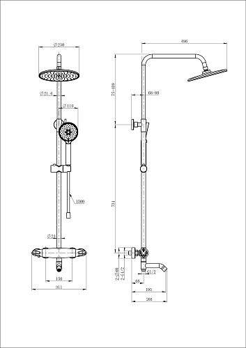 Душевая система с термостатом Wonzon & Woghand WW-B3031-A-MB