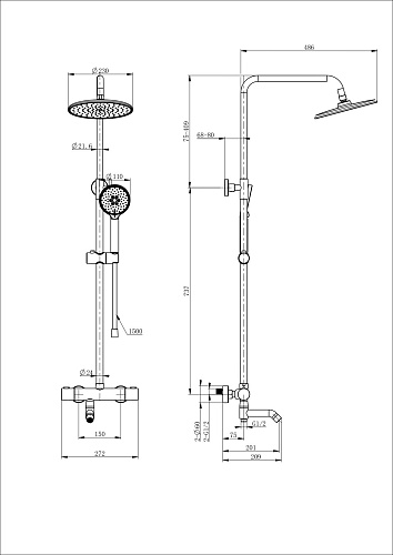 Душевая система с термостатом Wonzon & Woghand WW-B3047-A1-BGG