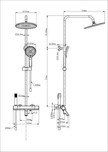Душевая система с термостатом Wonzon & Woghand WW-B3094-MB