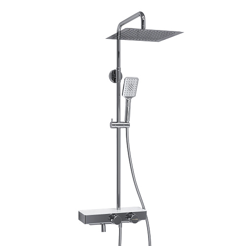 Характеристики: Напор воды не регулируется. Рекомендуем установку понижающих давление редукторов. Входит в комплект: - Душевая насадка 300 x 300 мм, 196 форсунок, нержавеющая сталь; - Стойка для душа, ? 24 мм регулируемая по высоте; - Лейка 3-функциональная с системой защиты от известковых отложений; - Шланг ПВХ 1500 мм, подключение к лейке; - Термостатический смеситель; - Термостатический картридж Vernet (Франция); - Встроенный пластиковый аэратор Neoperl HONEYCOMB (Германия) с регулируемым углом накло- на струи; - Обратный клапан Neoperl (Германия); - Керамический поворотный переключатель; - Набор для монтажа.