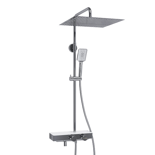 Характеристики: Напор воды не регулируется. Рекомендуем установку понижающих давление редукторов. Входит в комплект: - Душевая насадка 400 x 400 мм, 234 форсунок, нержавеющая сталь; - Стойка для душа, ? 24 мм регулируемая по высоте; - Лейка 3-функциональная с системой защиты от известковых отложений; - Шланг ПВХ 1500 мм, подключение к лейке; - Термостатический смеситель; - Термостатический картридж Vernet (Франция); - Встроенный пластиковый аэратор Neoperl HONEYCOMB (Германия) с регулируемым углом накло- на струи; - Обратный клапан Neoperl (Германия); - Керамический поворотный переключатель; - Набор для монтажа.