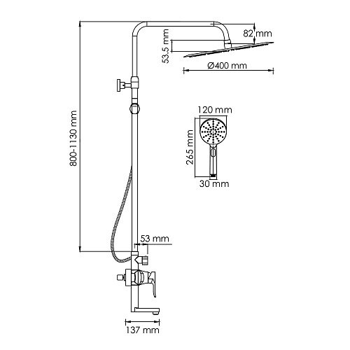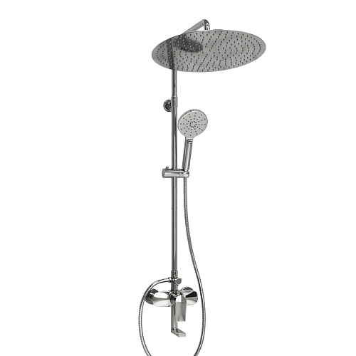 Входит в комплект: - Душевая насадка ? 400 мм, 248 форсунок, нержавеющая сталь; - Стойка для душа, ? 22 мм регулируемая по высоте; - Лейка 3-функциональная с системой защиты от известковых отложений; - Шланг металлический 1500 мм, подключение к лейке; - Смеситель для ванны с коротким изливом; - Керамический картридж 35мм, Sedal (Испания); - Встроенный пластиковый аэратор Neoperl HONEYCOMB (Германия) с регулируемым углом наклона струи; - Керамический поворотный переключатель; - Набор для монтажа. Материал: латунь, ABS-пластик, нержавеющая сталь. Хромоникелевое покрытие.