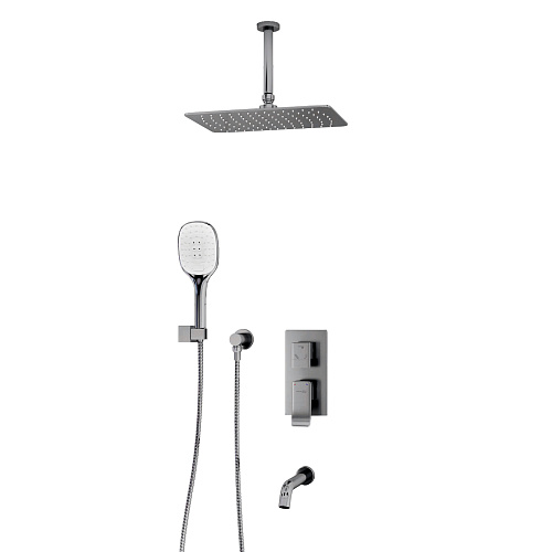 Характеристики Переключатель на 3 выхода Керамический картридж 40мм, Sedal (Испания) Керамический поворотный переключатель Душевая насадка 300х200 мм, 112 форсунок, нержавеющая сталь Комплект скрытого монтажа Наружная часть смесителя Входит в комплект Смеситель для ванны и душа Aller 10671 Подключение шланга A021 Верхняя душевая насадка A069 Потолочный излив для душа A068 Лейка 3-функциональная A062 Настенный держатель лейки, поворотный А011 Шланг для душа 1500 мм A010 Настенный излив для ванны A018 Материал латунь, нержавеющая сталь, ABS-пластик Покрытие хромоникелевое