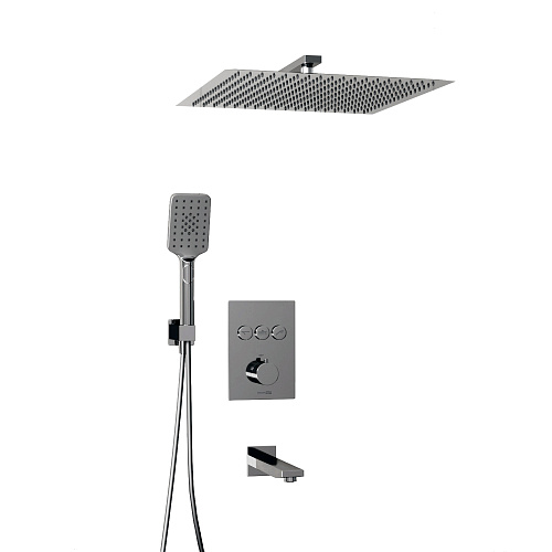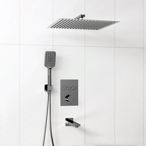 Характеристики Термостатический картридж Vernet (Франция) Обратный клапан Neoperl Переключатель на 3 выхода Душевая насадка 400 x 400 мм, 234 форсунок, нержавеющая сталь Лейка 3-функциональная с системой защиты от известковых отложений Комплект скрытого монтажа Наружная часть смесителя Входит в комплект Термостатический смеситель для ванны и душа Neime 1944 Thermo Подключение шланга A086 Шланг для душа 1500 мм А087 Верхняя душевая насадка A119 Верхний излив для душа A090 Лейка 3-функциональная A126 Настенный излив для ванны A091 Материал латунь, нержавеющая сталь, ABS-пластик Покрытие хромоникелевое
